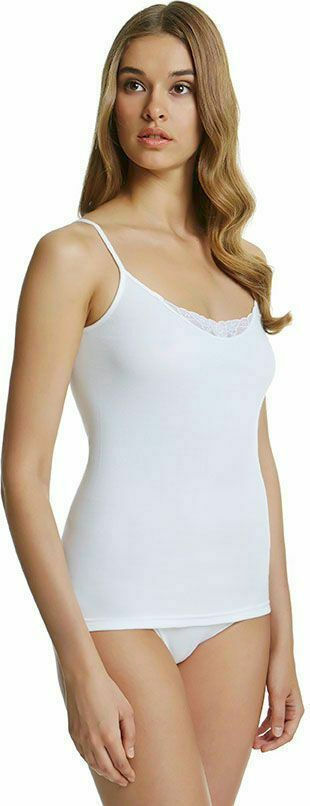 2 ΤΕΜΑΧΙΑ Λευκά γυναικεία φανελάκια Palco από 100% Βαμβάκι. Με λεπτή ράντα & δαντέλα. Χωρίς πλαϊνές ραφές.