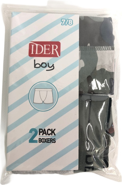2 TEMAXIA παιδικά boxer με εξωτερικό λάστιχο. Ένα στρατιωτικό και ένα γκρι ανοιχτό.