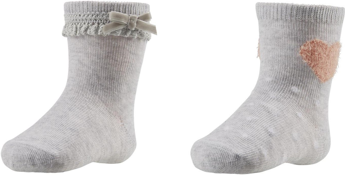 2 ΖΕΥΓΗ βρεφικές κοριτσίστικες γκρι κάλτσες. Μονόχρωμες με δαντέλα & πουά με σομόν καρδιά. (73% Βαμβάκι-25%Polyester-2%Elastane)