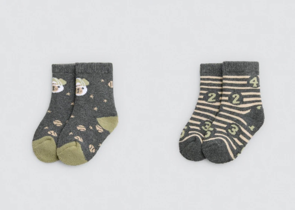 2Pack Ysabel Mora Βαμβακερές Πετσετέ Ανθρακί/Ριγέ Παιδικές Κάλτσες.