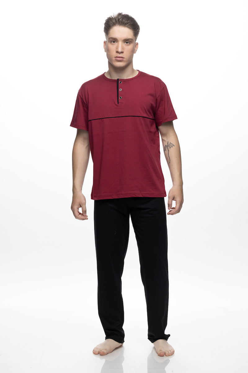 3 Τεμάχια Galaxy Βαμβακερή Ανδρική Πιτζάμα Μπορντό/Μαύρο.