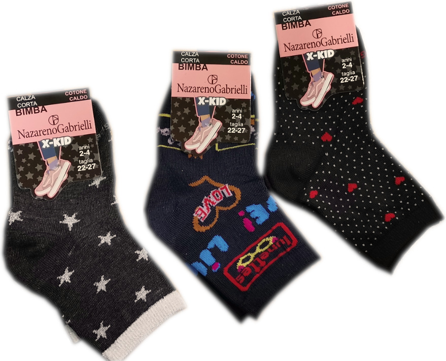 3 Ζεύγη Nazareno Gabrielli κοριτσίστικες κάλτσες με σχέδια μπλε/γκρι/μαύρες.