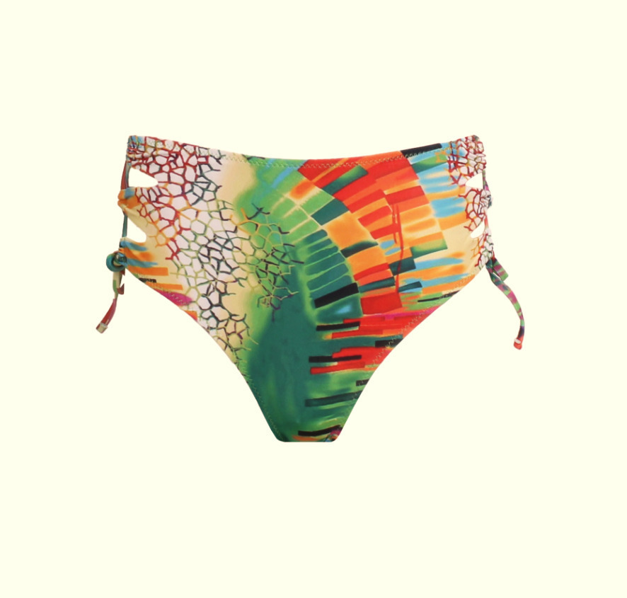 Apple εμπριμέ μαγιό σλιπ ψηλόμεσο με πλαϊνά ανοίγματα.