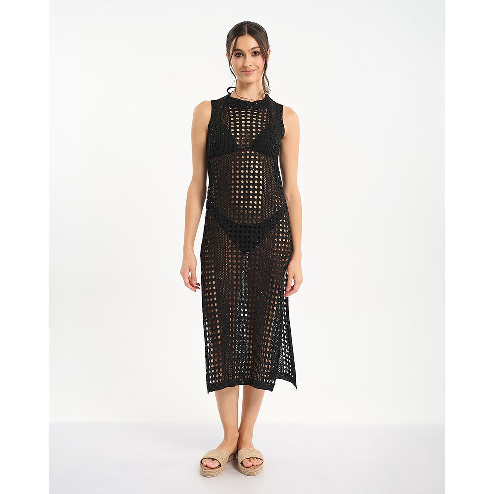 Ble Resort Collection Αμάνικο Μακρύ Μαύρο Φόρεμα Τρυπητό.