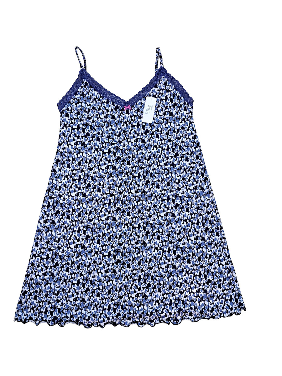 Elite Μπλε Εμπριμέ Νυχτικό Με Ράντα.