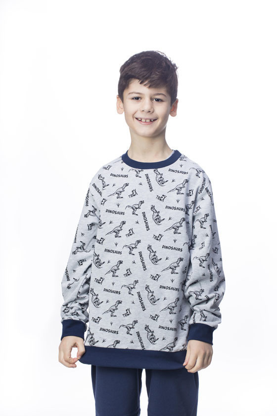 Galaxy γκρι/μπλε φούτερ παιδική πιτζάμα με δεινόσαυρους.