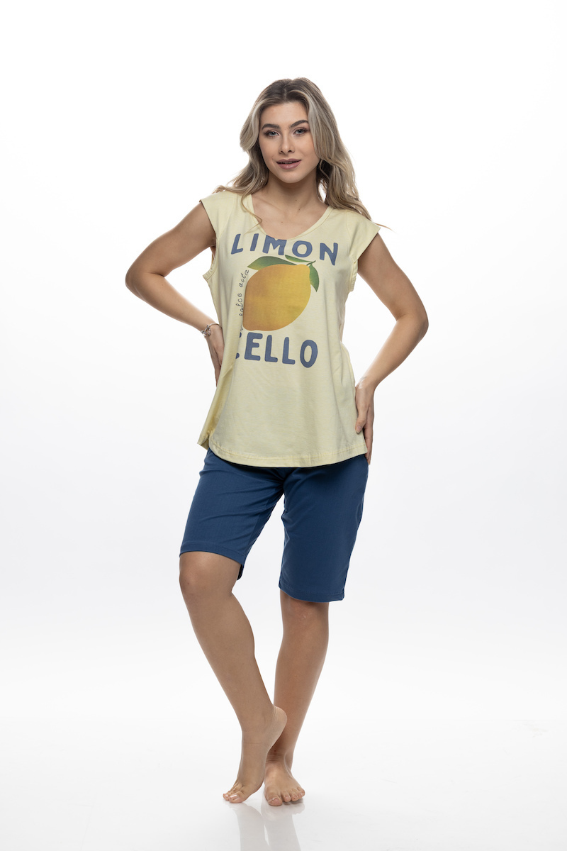 Galaxy Βαμβακερή Γυναικεία Πιτζάμα Λεμονί/Μπλε.