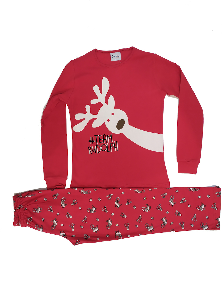 Galaxy βαμβακερή μαύρη/κόκκινη εμπριμέ παιδική πιτζάμα #Team Rudolph.