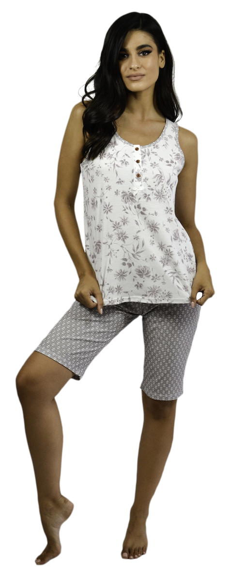Galaxy βαμβακερή rib εκρού/ εμπριμέ γυναικεία πιτζάμα.