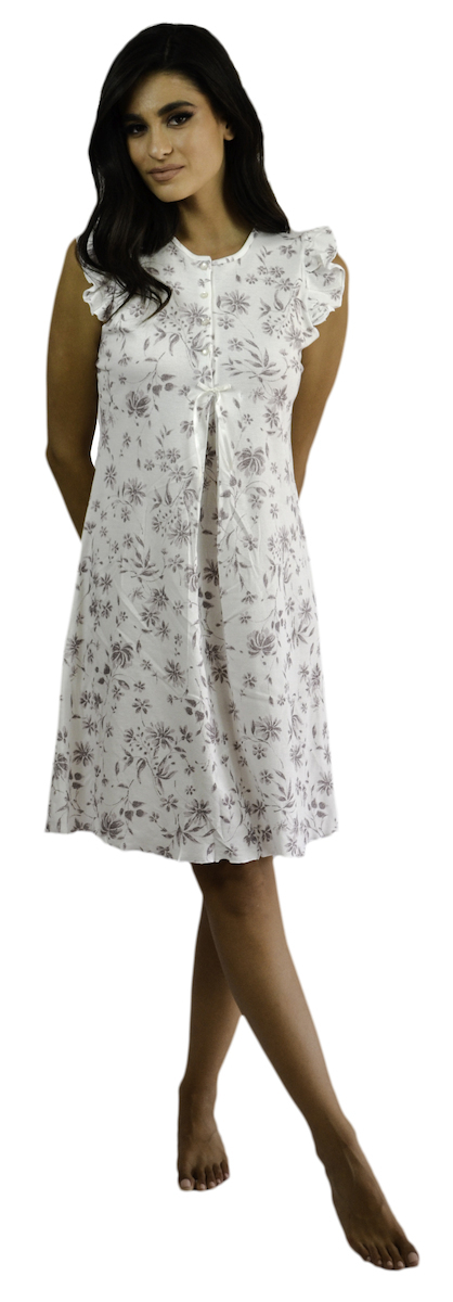 Galaxy βαμβακερή rib εκρού εμπριμέ νυχτικό με ζαπονέ μανίκι.