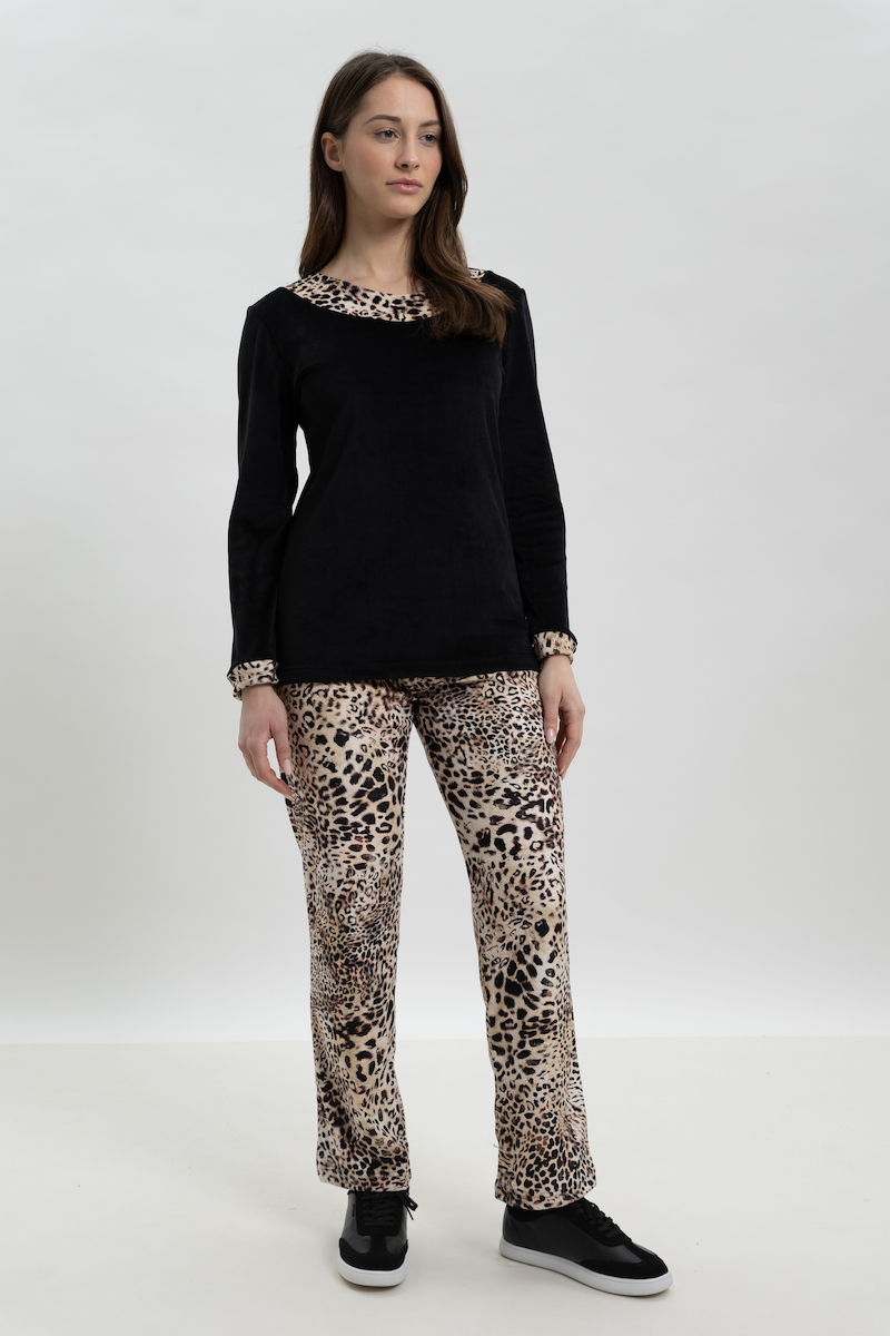 Giota Μαύρη Βελούδινη Πιτζάμα Με Λεοπάρ Παντελόνι.