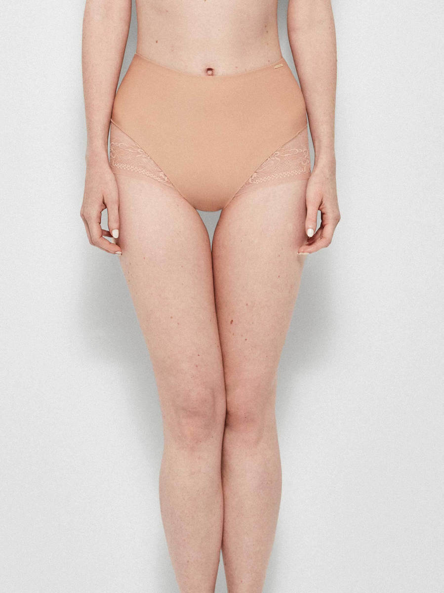 Gisela μπεζ ψηλόμεσο σφιχτό slip με δαντέλα.