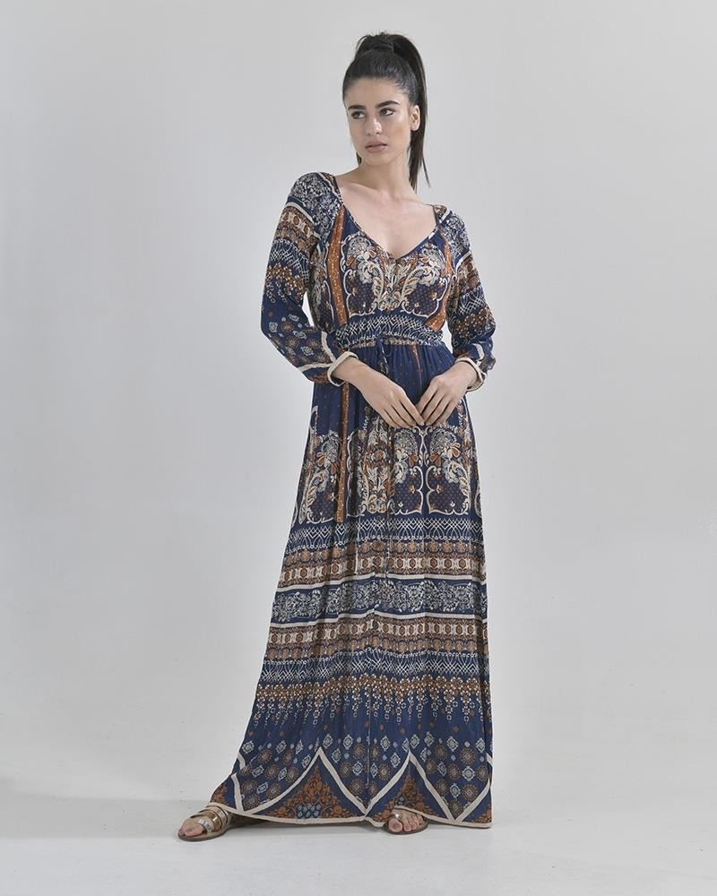 Γυναικείο μακρύ καφτάνι μπλε /μπεζ.