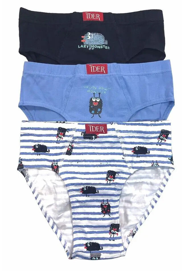 IDER 3-PACK ΑΓΟΡΙΣΤΙΚΟ ΣΛΙΠ ΜΕ ΕΣΩΤΕΡΙΚΟ ΛΑΣΤΙΧΟ ΚΑΙ ΤΥΠΩΜΑ MONSTERS ΜΠΛΕ/ΣΙΕΛ/ΡΙΓΕ.
