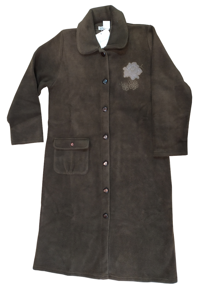 Jeannette καφέ φλις γυναικεία κουμπωτή ρόμπα με κέντημα.