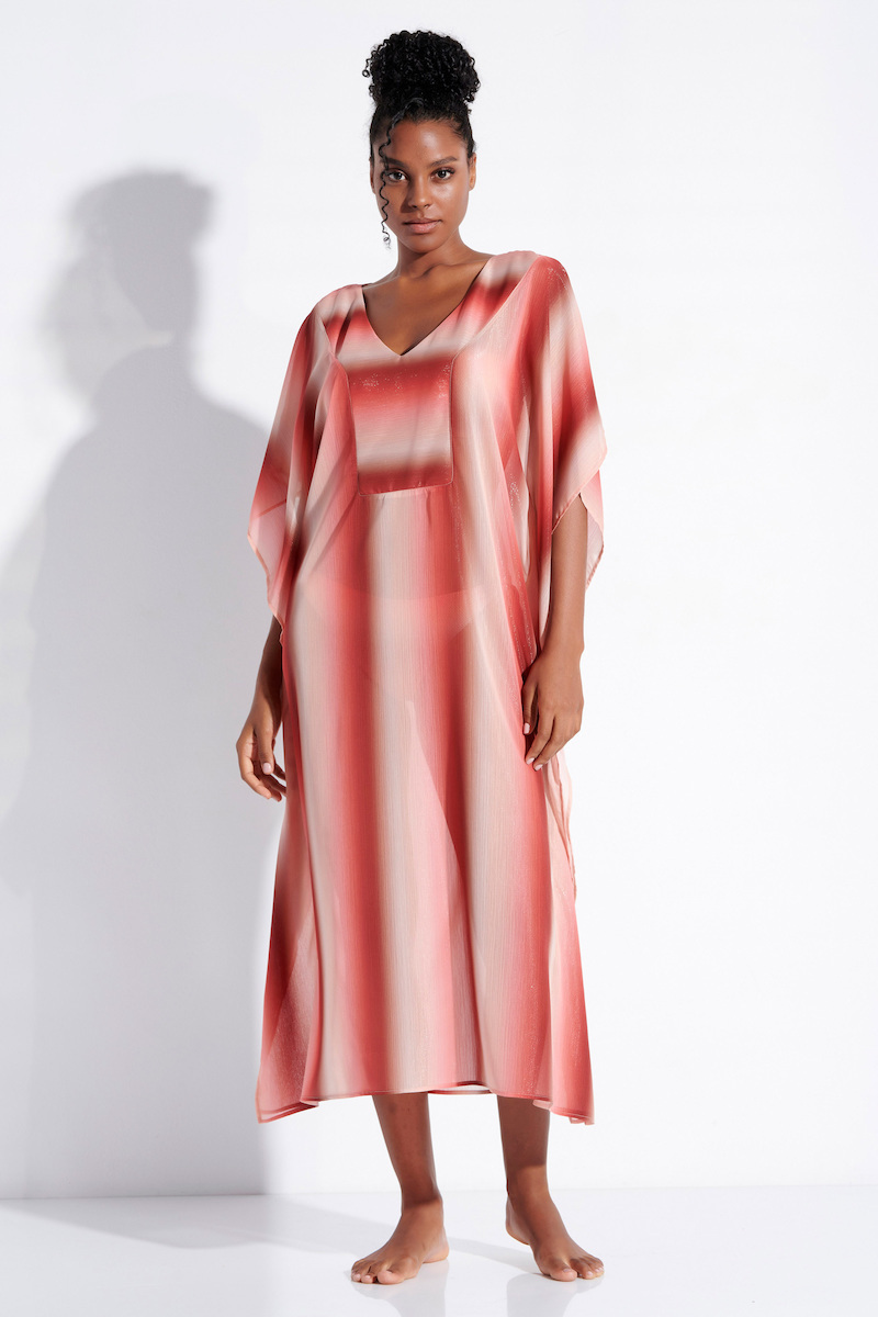 Jeannette Κοραλί Maxi Καφτάνι Με Ασημοκλωστή.