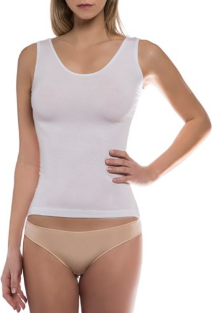 Λευκό γυναικείο τοπ με φαρδιά ράντα από 95% Bamboo - 5% Elastane.