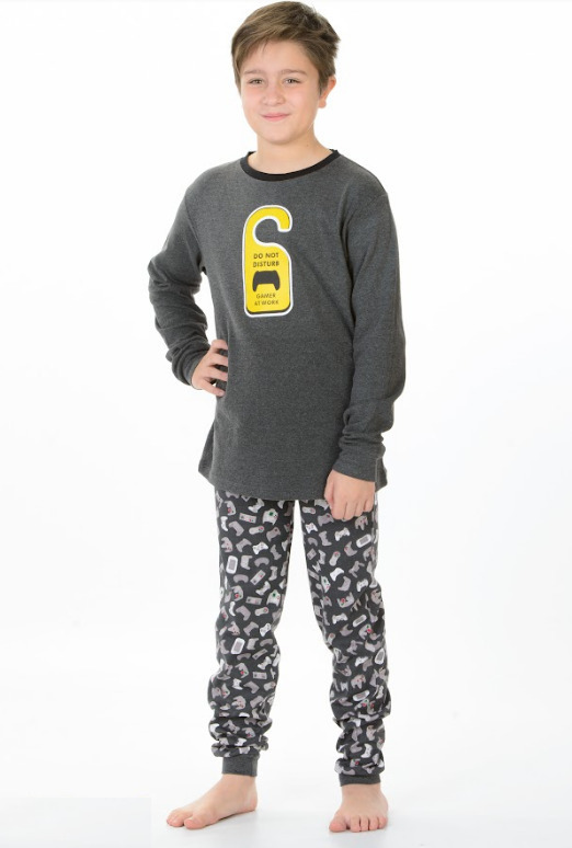 Mei γκρι παιδική πιτζάμα "Do not disturb.Gamer at work."