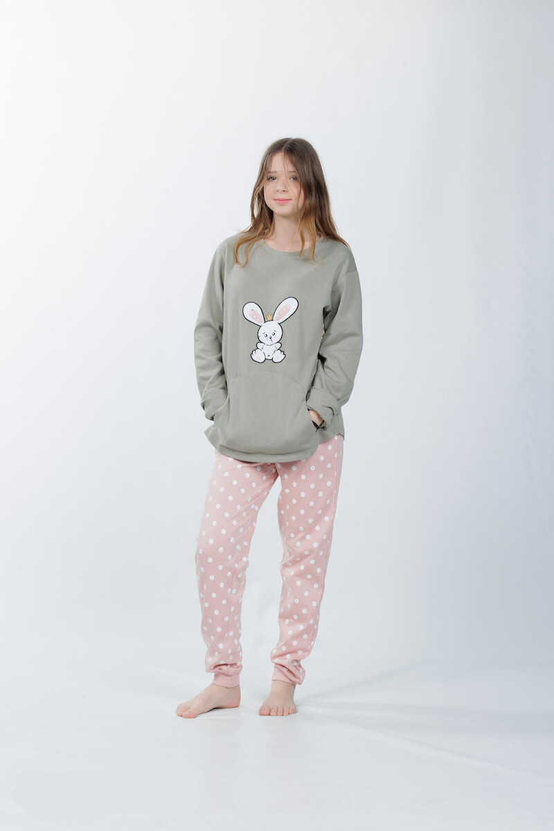 Mei Βαμβακερή Παιδική Πιτζάμα Λαδί/Ροζ Πουά.
