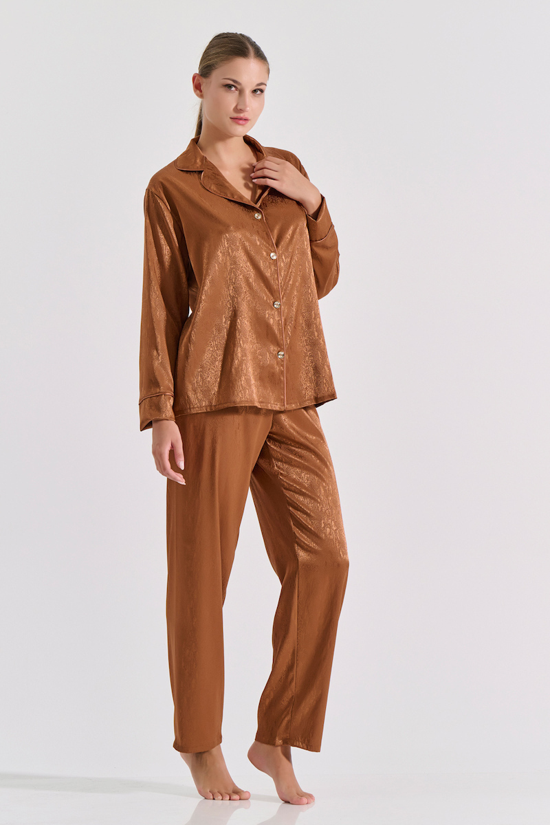 Milena by Paris Χειμερινό Γυναικείο Σετ Πιτζάμας Μπρονζέ 009190-Μπρονζέ