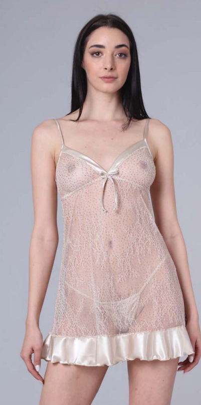 Milena by Paris Χρυσαφί διάφανο νυχτικό & string.