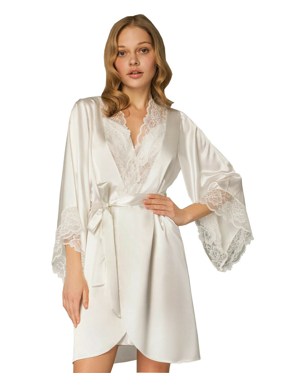 Milena by Paris ιβουάρ σατέν ρόμπα με δαντέλα.