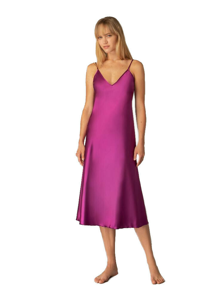 Milena Paris Σετ Βιολετί σατέν midi νυχτικό & string.