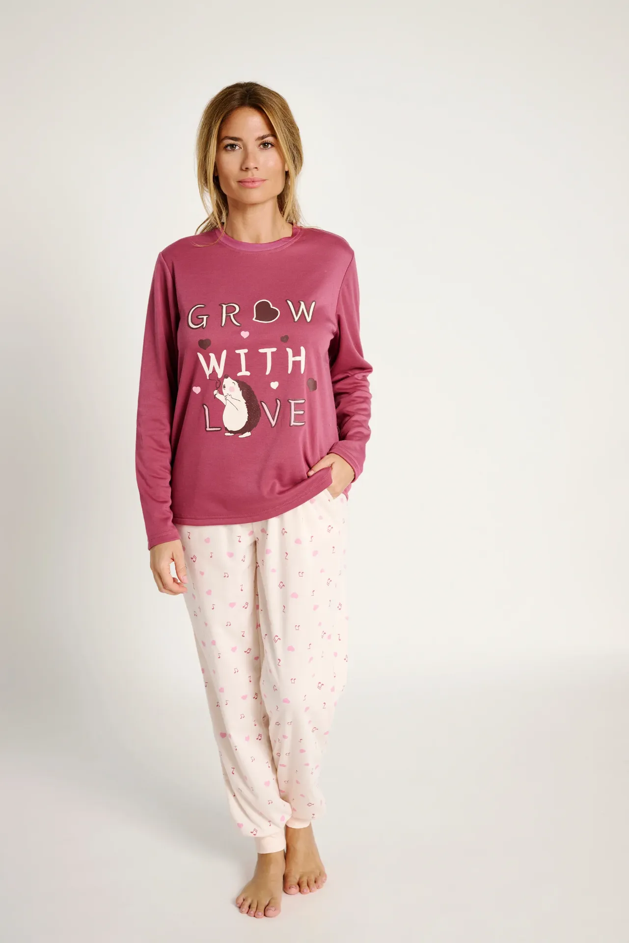 Muydemi Σάπιο Μήλο/Εκρού Γυναικεία Πιτζάμα Με Χνούδι Εσωτερικά.