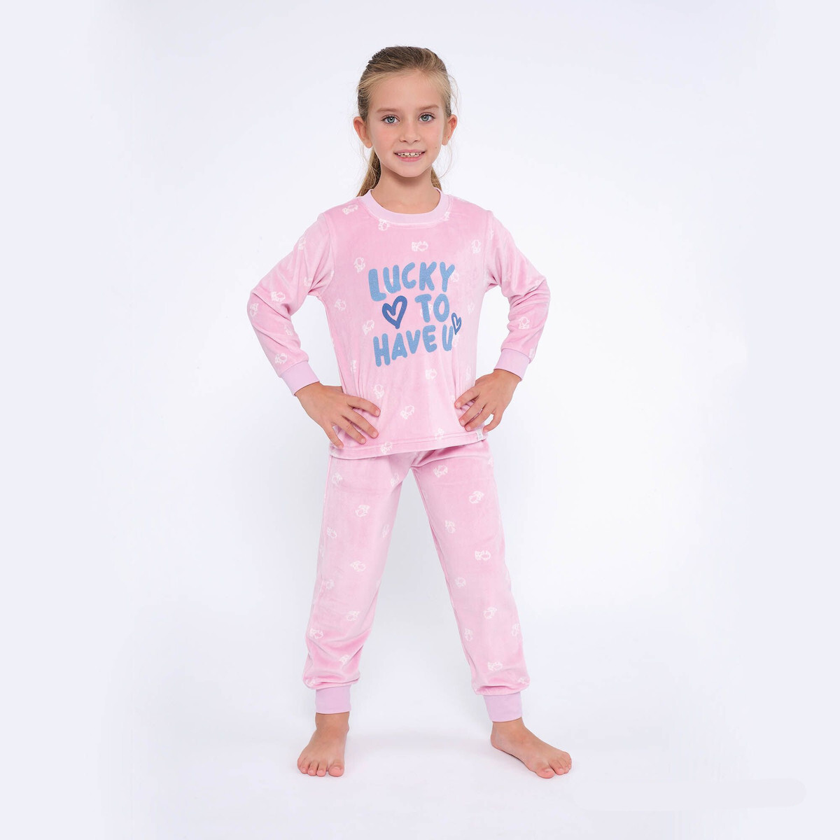 Muydemi Ροζ Βελούδινη Ελαστική Παιδική Πιτζάμα .