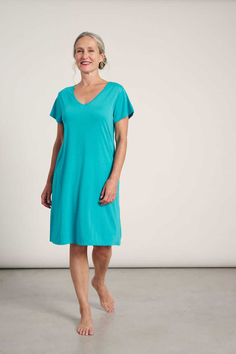 Muydemi Τιρκουάζ Μονόχρωμο Κοντομάνικο Φόρεμα.