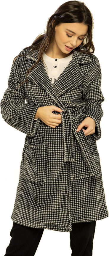 Noidinotte ασπρόμαυρη πιε ντε πουλ φλις σταυρωτή ρόμπα.