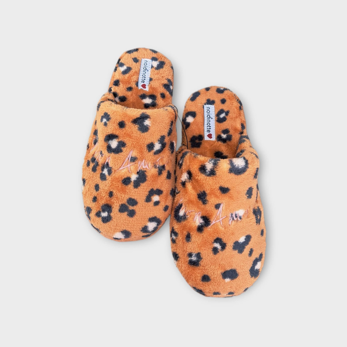 Noidinotte Fleece Μπεζ Λεοπάρ Γυναικείες Παντόφλες.