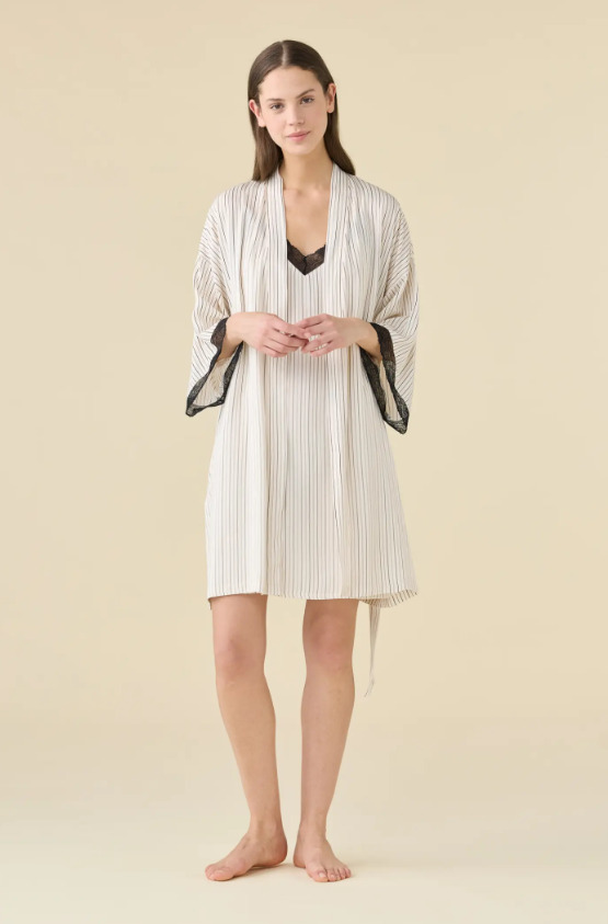 Noidinotte Viscose Σετ Νυχτικό & Ρόμπα Ιβουάρ Ριγέ.