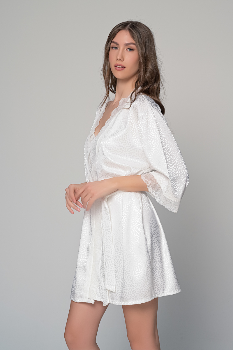 Νυφική Ρόμπα Σατέν Δαντέλα Ιβουάρ Λευκό Γυναικείο Milenabyparis