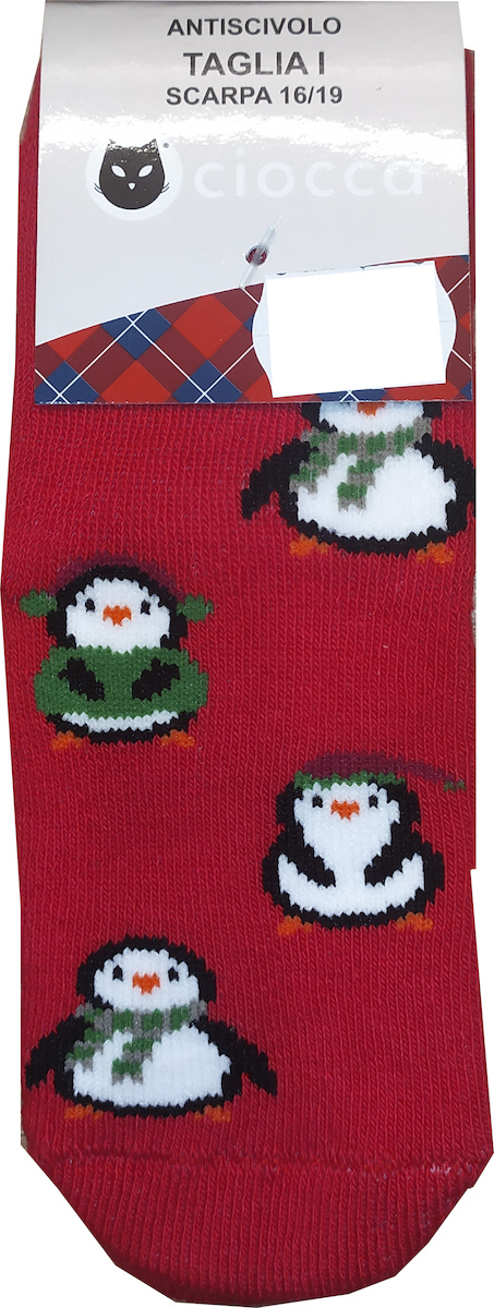 Παιδικές κάλτσες με πατουσάκια σιλικόνης από κάτω. Κόκκινες με πιγκουίνους. Πετσέτα εσωτερικά.(75%Βαμβάκι-24%Πολυαμίδιο-1%Elastane)