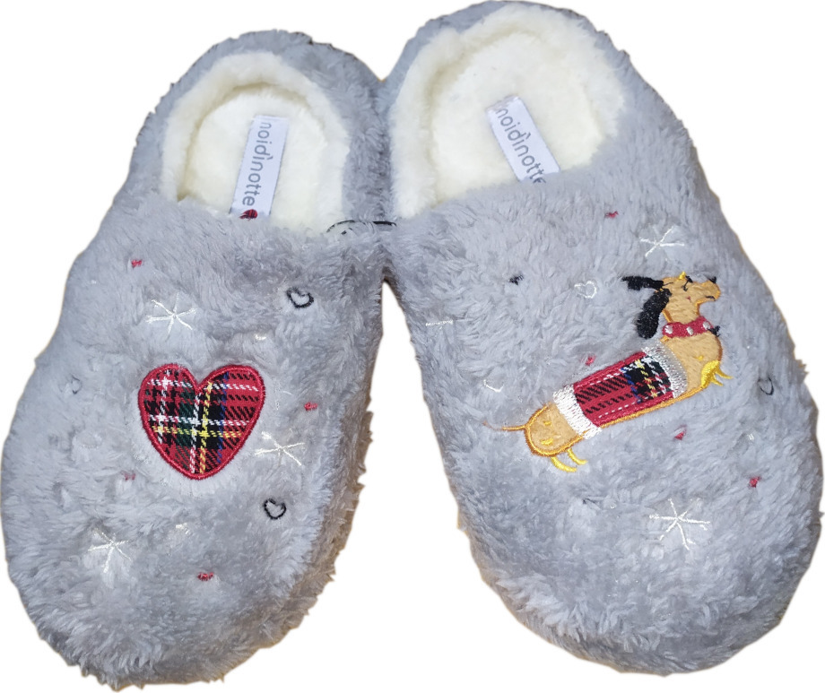 Παιδικές παντόφλες φλις. Γκρι με κέντημα "καρδιά" & "σκυλάκι".