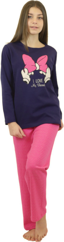 Παιδική κοριτσίστικη πιτζάμα από 100% βαμβάκι. Μπλε μπλούζα με κέντημα. Φούξια πουά παντελόνι.