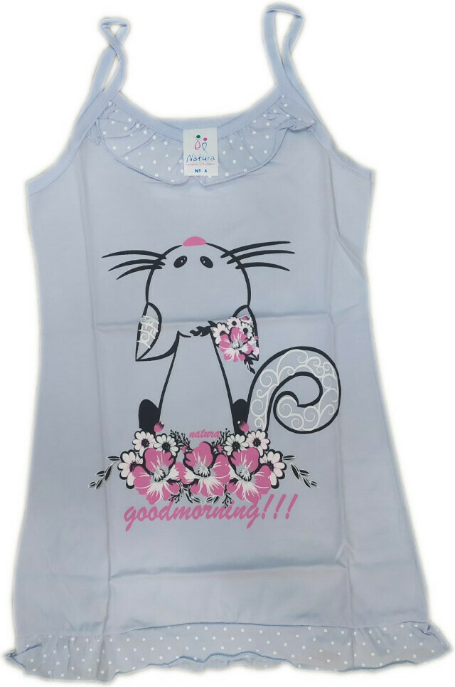 Παιδικό κοριτσίστικο νυχτικό με ραντάκι από 100% βαμβάκι. Σιέλ με πουά βολάν & στάμπα.