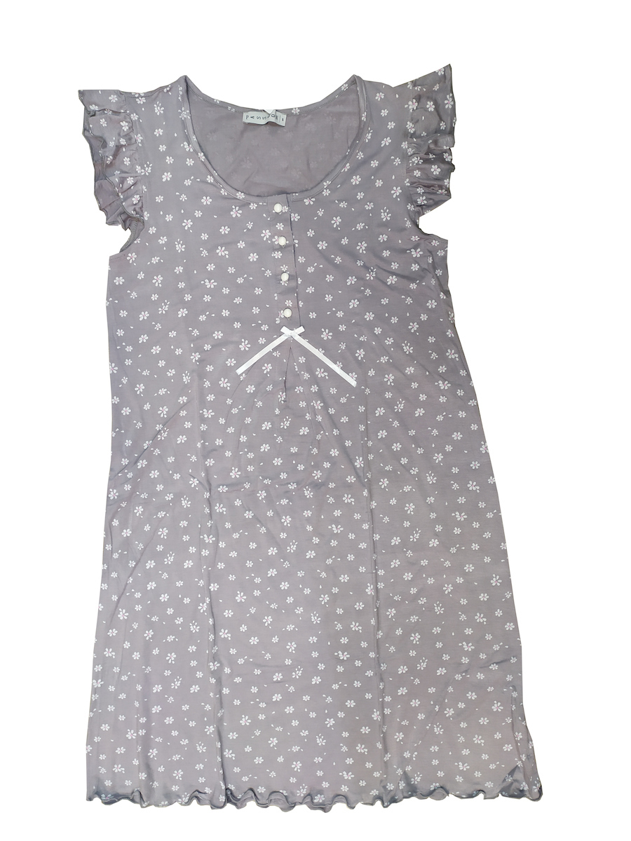 Passion γκρι φλοράλ νυχτικό με ζαπονέ μανίκι και κουφόπιετα.