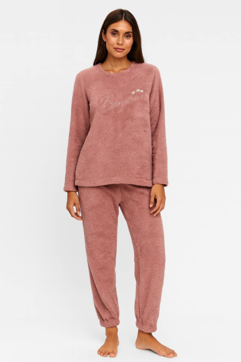 Passion Γυναικεία Πιτζάμα Fleece Σάπιο Μήλο "Bonjour".