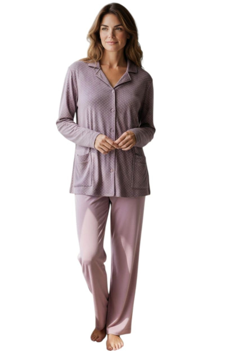 Passion Βαμβακερή Κουμπωτή Γυναικεία Πιτζάμα Βιολετί/Ροζ Πουά.