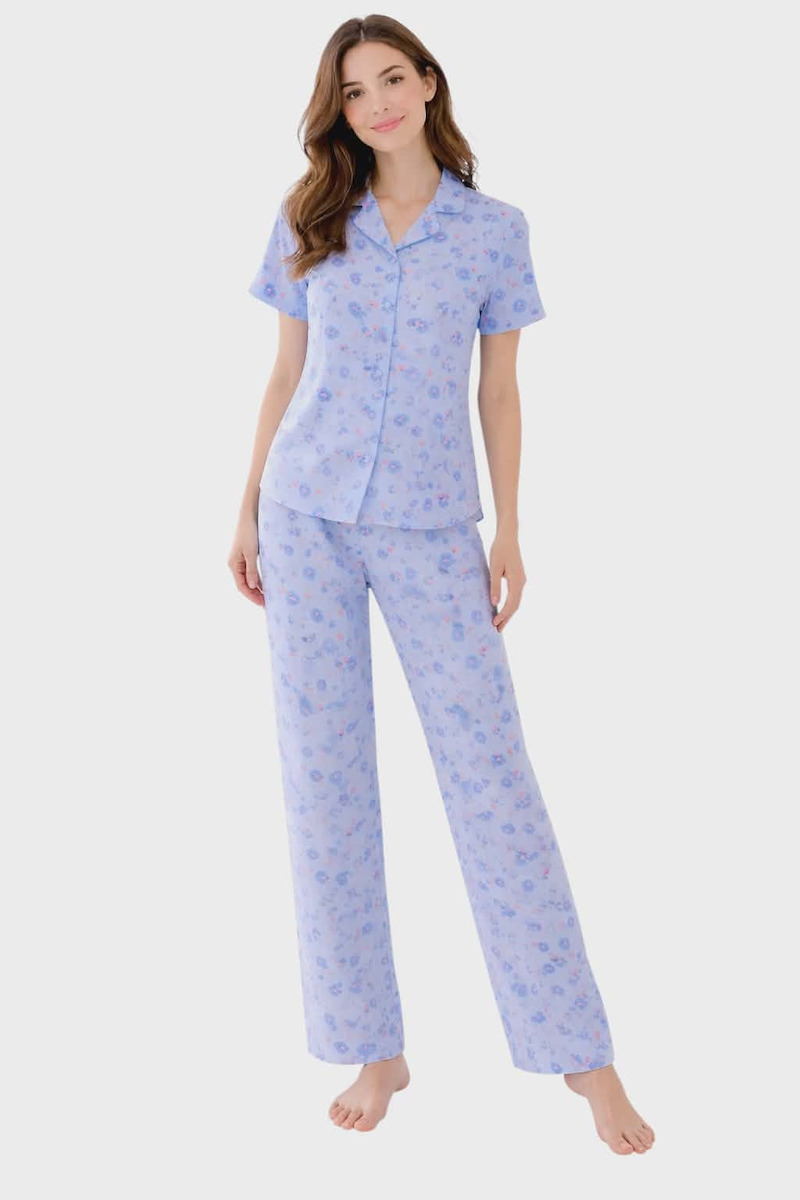 Passion Βαμβακερή Ποπλίνα Γυναικεία Κουμπωτή Πιτζάμα Λιλά Φλοράλ Με Μακρύ Παντελόνι.