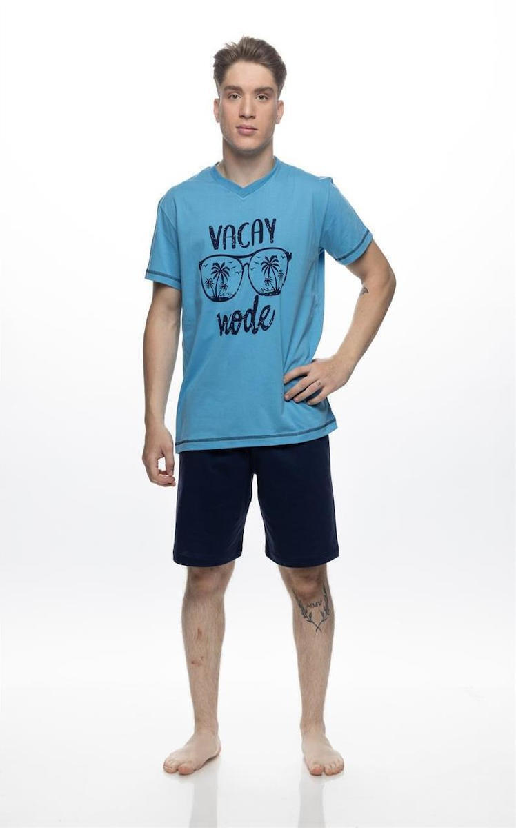 Plus Size Galaxy Καλοκαιρινή Ανδρική Πιτζάμα Βαμβακερή Γαλάζια