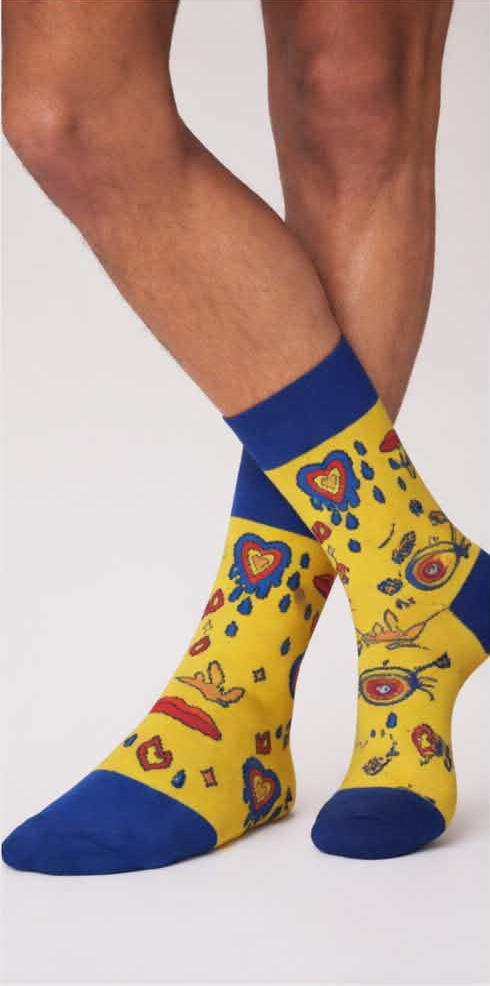 Pournara Βαμβακερές Κίτρινες Ανδρικές Κάλτσες Με Σχέδιο.