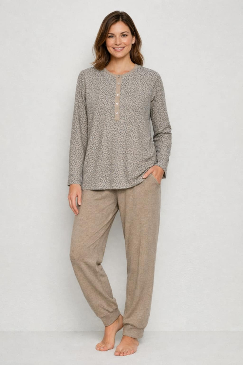Qbo Μπεζ Λεοπάρ Ζεστή Χειμερινή Γυναικεία Πιτζάμα.