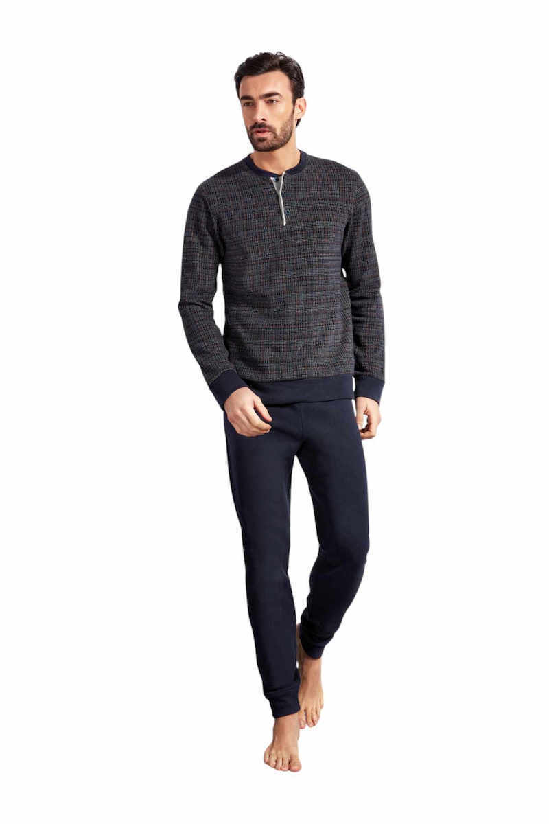 QBO Μπλε Ανδρικές Χειμερινές Πιτζάμες Fleece/Cotton.