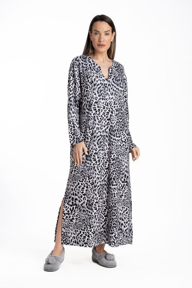 Relax Γκρι Λεοπάρ Καφτάνι Μακρυμάνικο.