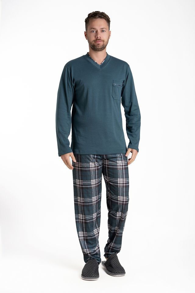 Relax Πετρόλ Βαμβακερή Ανδρική Πιτζάμα Καρό.