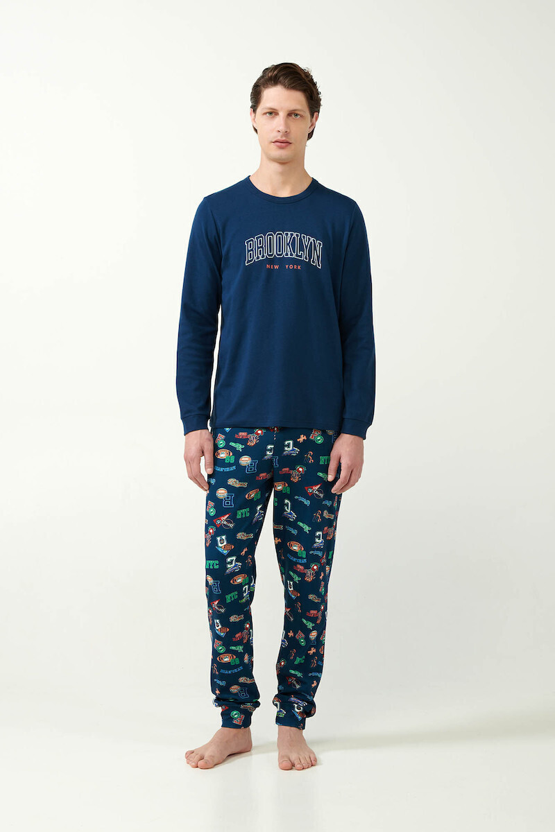 Vamp Ανδρική Πυτζάμα Βαμβακερή Λαιμόκοψη & Παντελόνι Σχέδια Blue Moonlit - 21610