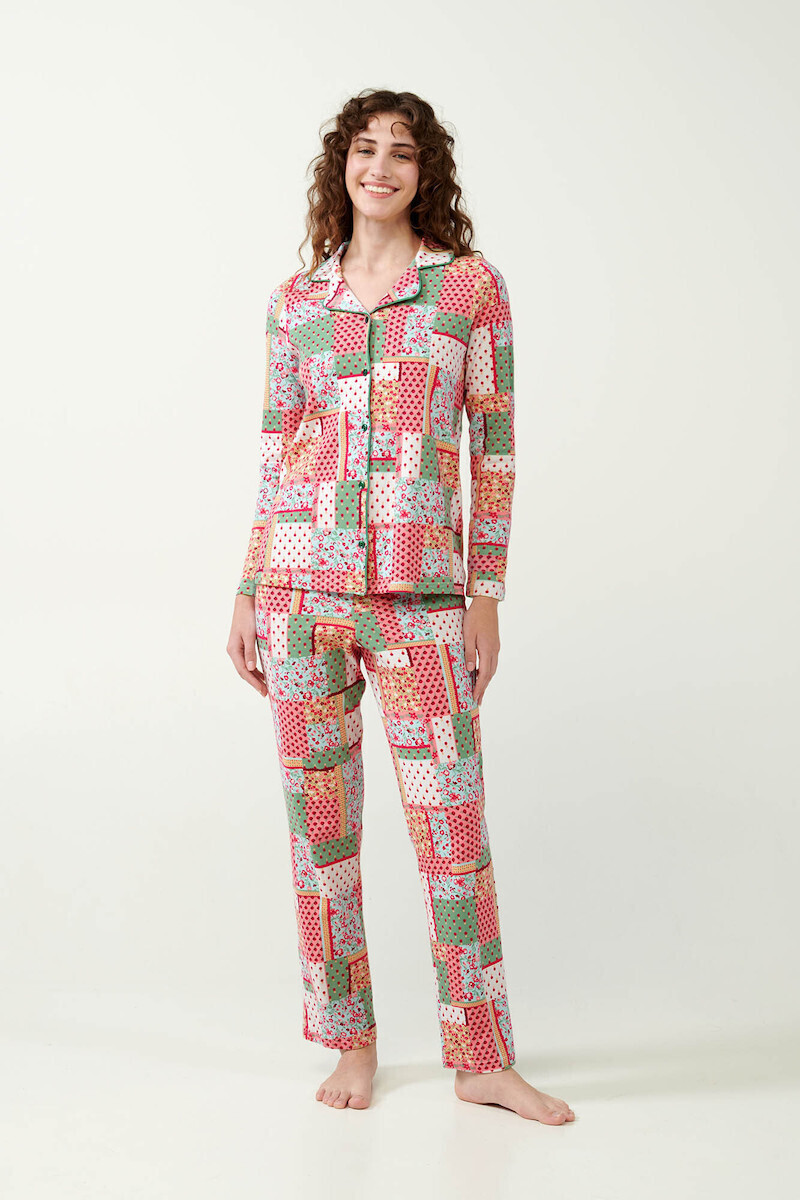 Vamp Χειμερινή Γυναικεία Βαμβακερή Μπλούζα Πιτζάμας Green Barley 21372